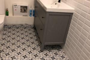 Dans le cadre d'une rénovation de salle de bain, voici l'après avec une présentation de la vasque, douche et WC.